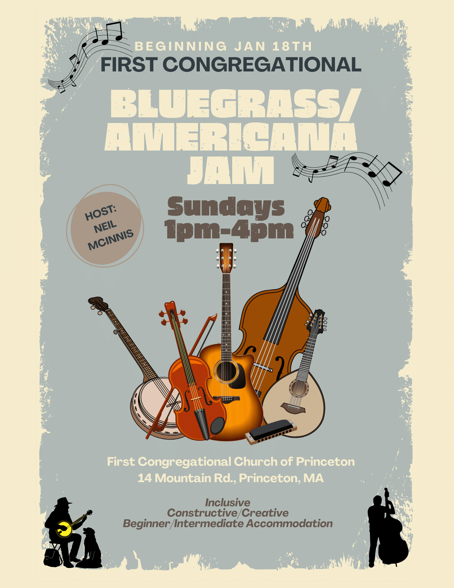 The weekly Tuftonboro Country, Bluegrass & Gospel Music Jam Session continues at the historic Old White Church of Center Tuftonboro every Tuesday from 6:30 until about 9:30 pm. Fans of country, bluegrass and gospel music are invited to enjoy an evening of music. There is no admission charge, a donation is requested to help cover […] Second Tuesday of the month. Led by G. Rockwell. Jams will run every second Tuesday from September through June! Ages 16+ welcome! All alcohol sales will be carded. Non-alcoholic and alcoholic drinks will be available for purchase in the Woodland Room.